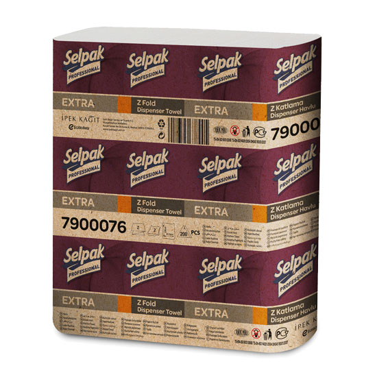 Çok sayıda insanın kullandığı ofis ortamında kumaş havluların kullanımı sağlık açısından hiç doğru değil. Bu alanlarda tek kullanımlık kağıt havluların kullanılması gerekiyor. Kağıt havlu dispenseri içinde Z şeklinde katlı halde bulunan Selpak Professional Extra Z katlı dispenser havlu isteğe bağlı olarak tek tek çekilerek kullanılıyor. Bir pakette, 21,5 cm x 24 cm boyutlarında 200 adet yaprak bulunuyor. 4,5 kg ağırlığındaki bir kolide ise 12 adet paket mevcut.