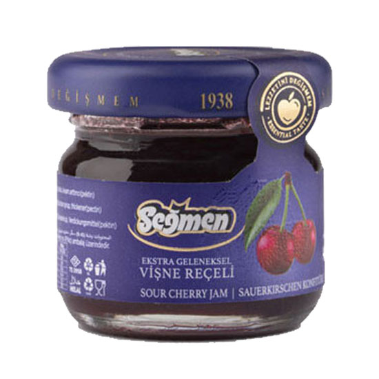 Seğmen Vişne reçeli kahvaltıdan diğer öğünlere kadar lezzetli bir kullanım sunuyor. Özellikle kahvaltı sofralarının vazgeçilmez parçası olarak sofralarda yerini buluyor. Belirli tarımsal alanlarda özenle yetiştirilen vişnelerden hazırlanmış olan lezzetli Vişne reçeli pratik yapısı ile sofralara lezzet veriyor.